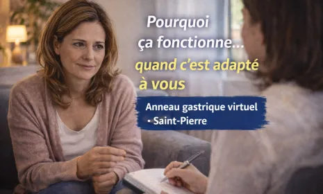L’anneau gastrique virtuel est une technique d’hypnose qui agit sur l’inconscient pour favoriser la perte de poids sans intervention chirurgicale. Cet anneau hypnotique permet de modifier la perception des quantités alimentaires et de réduire naturellement la prise alimentaire. Le travail autour de l’anneau gastrique s’inscrit dans un accompagnement global, incluant nutrition, comportement et émotions. Cette méthode s’adresse aux personnes souhaitant perdre des kilogrammes de manière durable, avec une meilleure écoute du corps et une prise en charge respectueuse de la santé physique et émotionnelle.